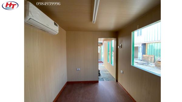 Container được trang bị hệ thống điện, điều hòa (vị trí trung tâm giữa phòng ngủ và phòng khách để tiết kiệm chi phí), và quạt thông gió, đảm bảo không gian luôn thoáng mát, tiện nghi và tiết kiệm năng lượng.